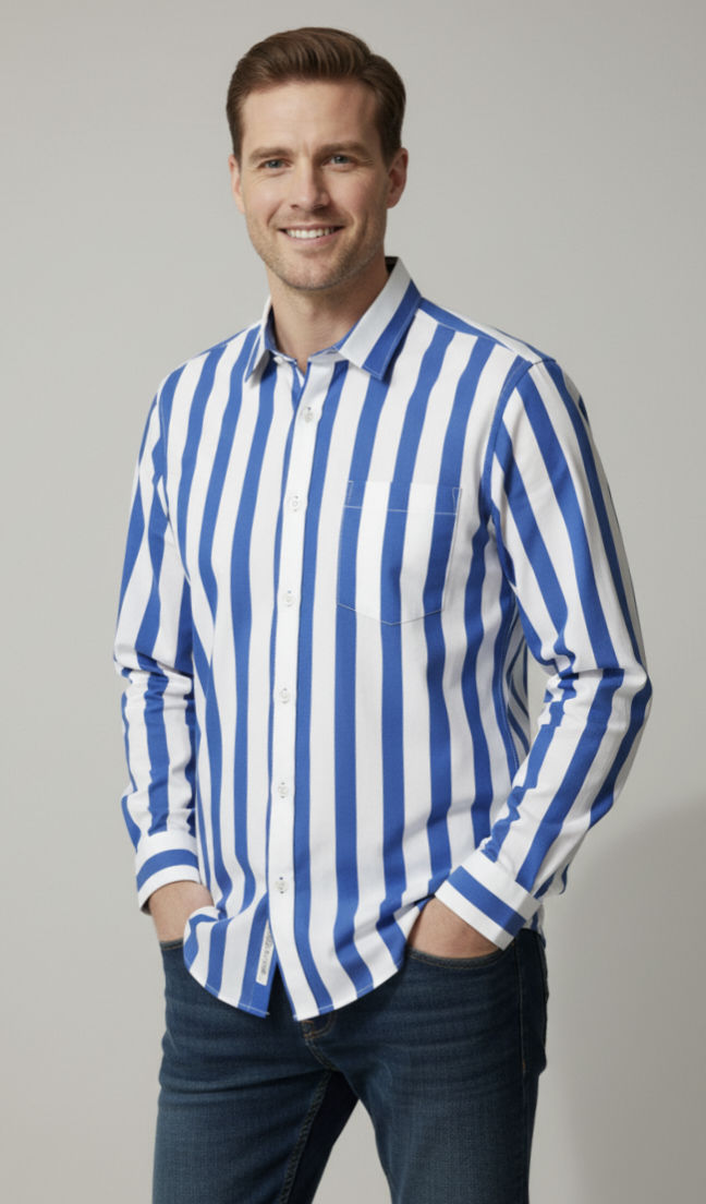 OLLIE DYER COTTON SHIRTS WITH BLUE STRIPE