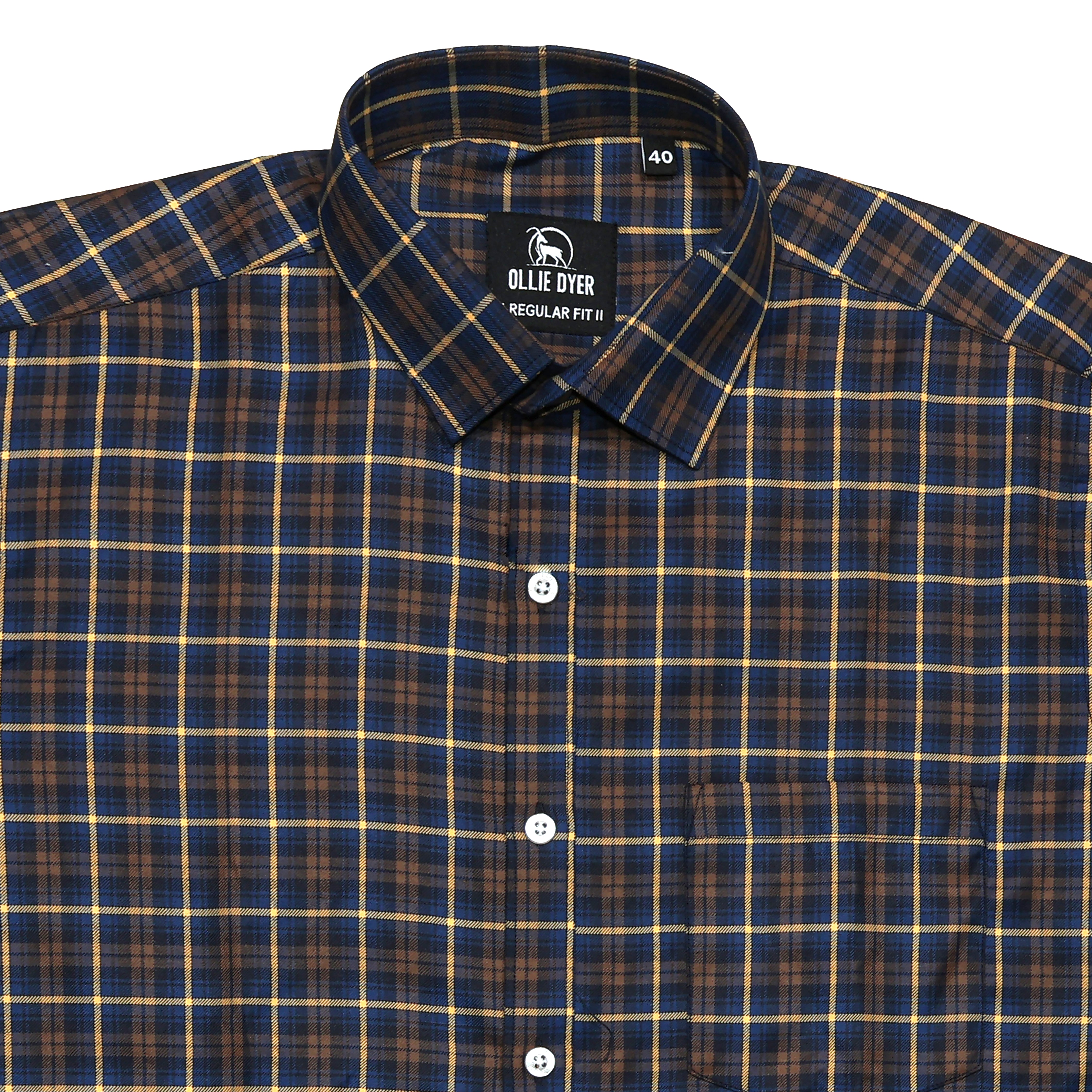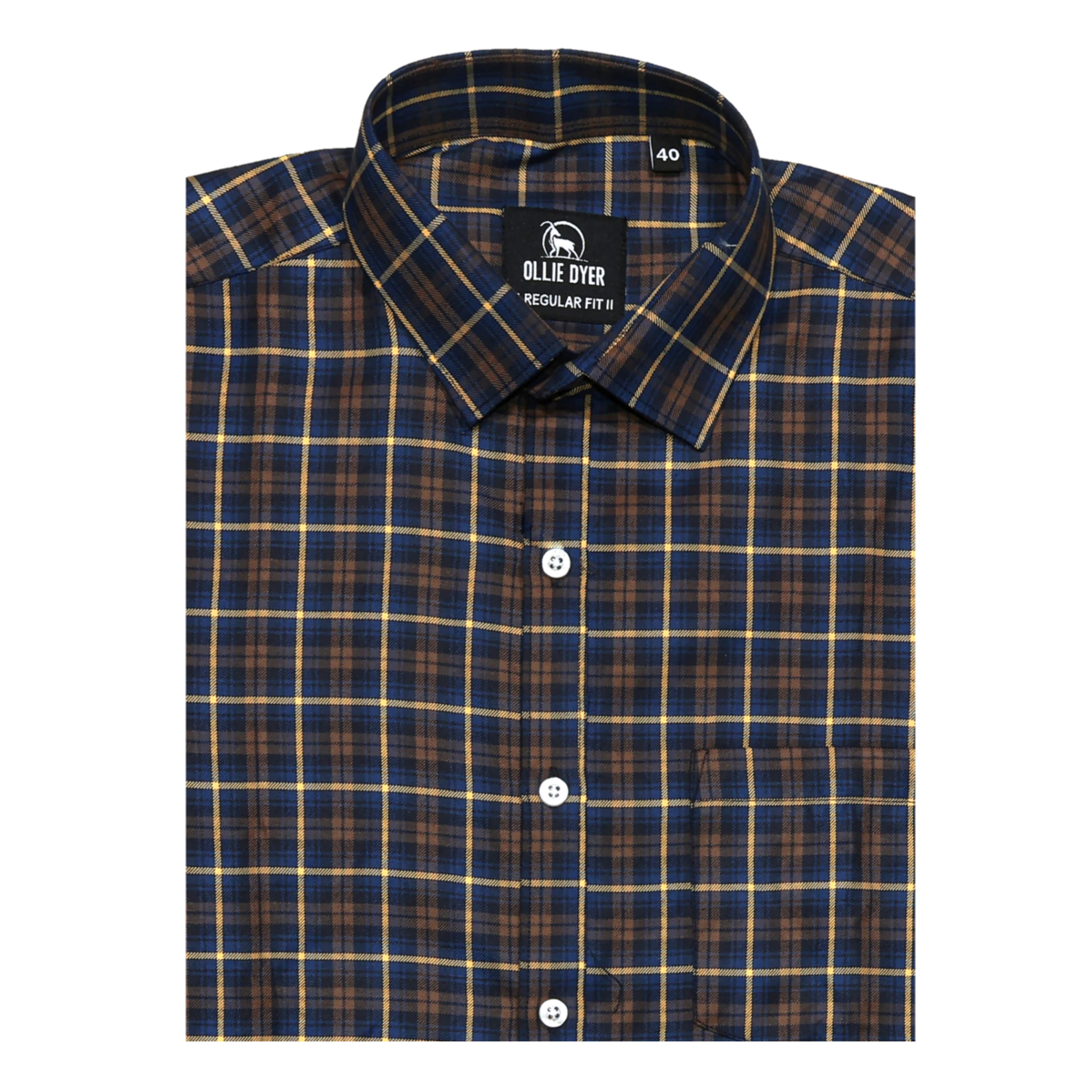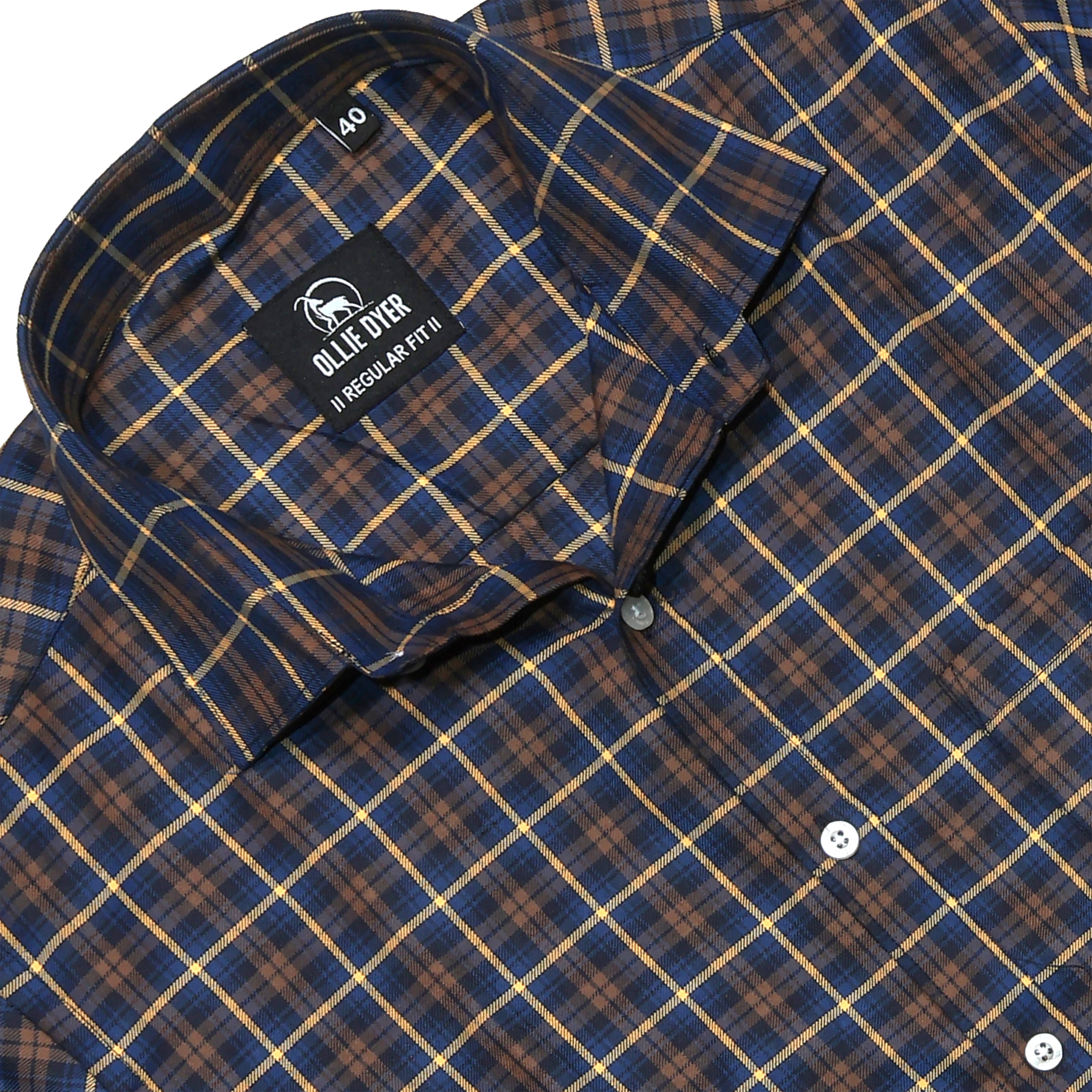 Ollie Dyer Brown Checks Regular Fit Shirt