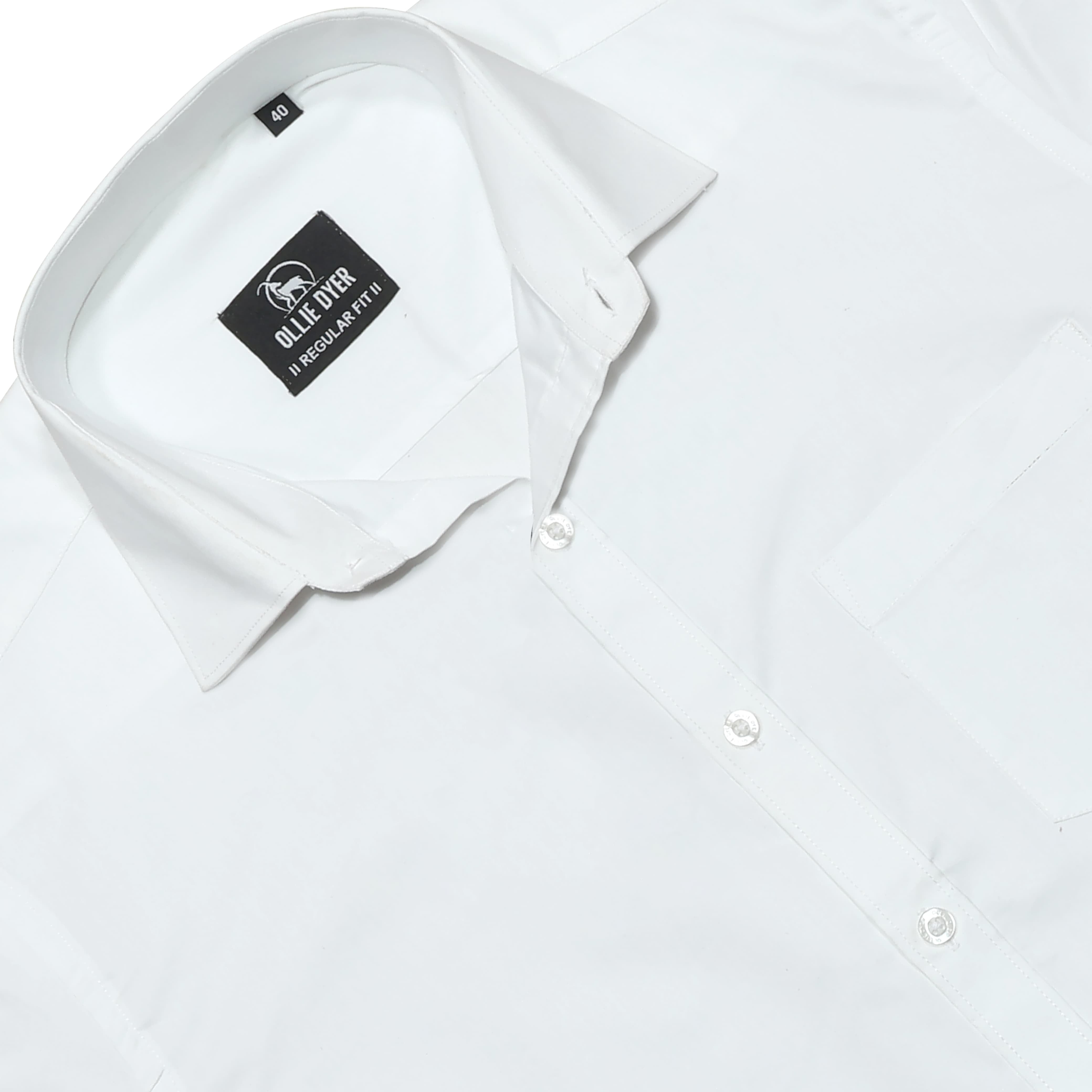 Upgrade your formal wardrobe with our Ollie Dyer cotton white shirt, designed for the modern man who values style and comfort. This full-sleeve, regular fit shirt features a sophisticated button-down collar and button closure, making it a versatile addition to any outfit. Crafted from premium woven satin, it offers a luxurious feel and a sleek, plain design that is perfect for any formal occasion. The subtle stretch ensures ease of movement, providing all-day comfort without compromising on elegance. Ideal for business meetings, weddings, or any formal event, this Ollie Dyer shirt is a must-have for those who appreciate timeless fashion.