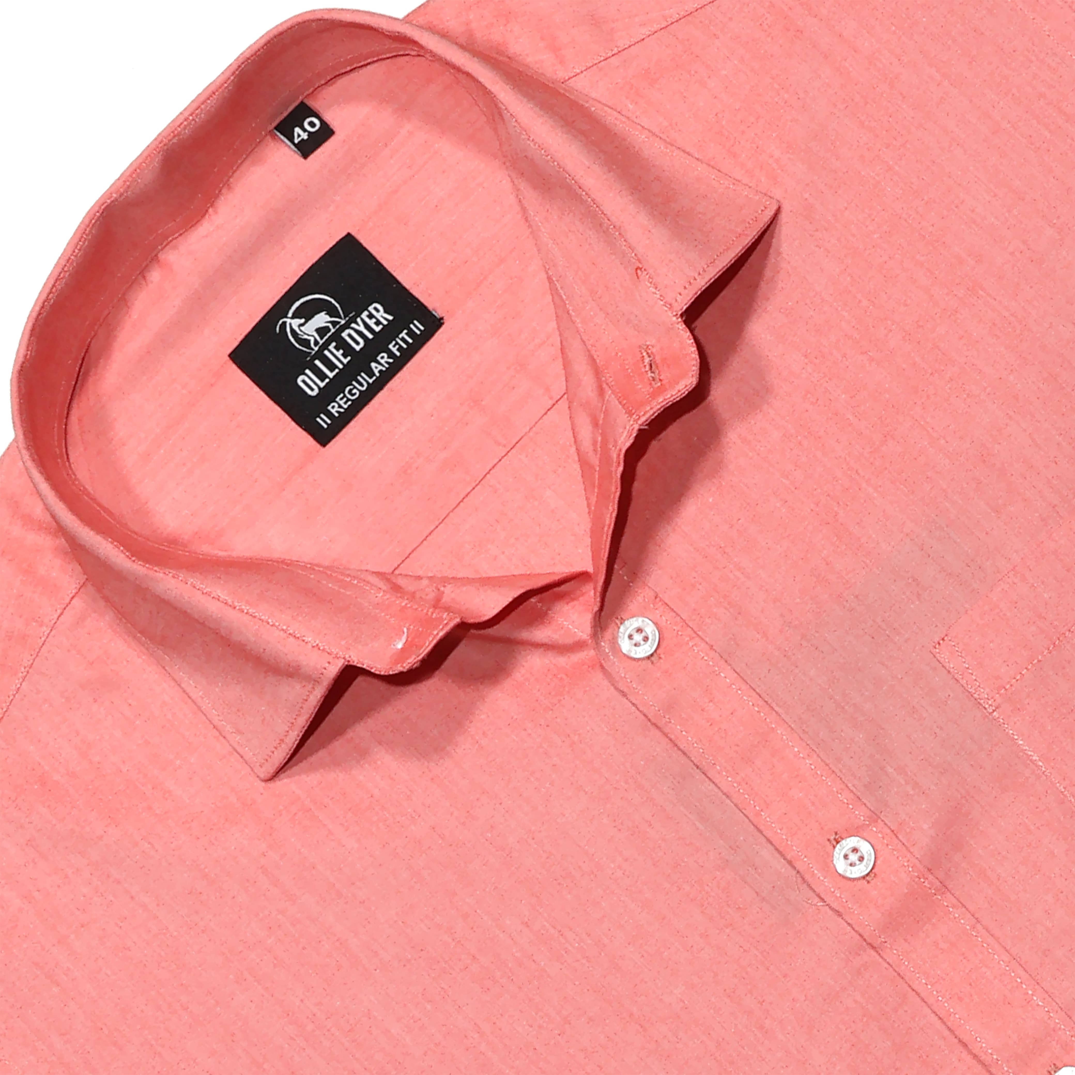 Ollie Dyer 100% Cotton Peach Color Regular Fit Shirt